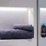 Disfruta de la comodidad del baño del apartamento Cozy Stay Apartement, equipado con secador de pelo y toallas de baño. También dispone de un inodoro separado y ducha.